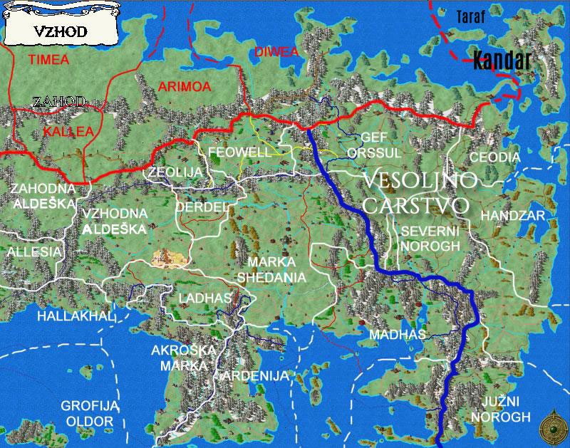 »Kako nizkotno!« zarenči. »Ko se bodo Ureusove horde prebile mimo gozdnih vilinov, bo za pol mogosa padel tudi Aldeverg. Akroški in ostali zahodni malahidi čakajo in se bodo v pravem trenutku pogodili z megšelemsko zverjo. Vedo, da bo carski guverner nekako moral vladati deželi, in obstoječi malahidi so v začetni fazi konsolidacije najboljši način za pobiranje tributov. A na koncu bodo zagotovo postali lakoševo kosilo. Vsak modri vladar izdajalce najprej izkoristi, zatem pa jih neusmiljeno pokonča. Če izdajo svoje, še toliko hitreje izdajo zavojevalca.«